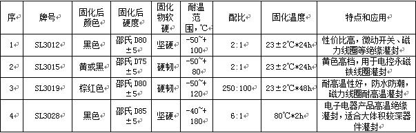 世林的微動(dòng)開關(guān)用灌封膠,有這么幾種產(chǎn)品,主要是在耐溫等級(jí)有區(qū)別,當(dāng)然灌封膠的顏色,配比這些都可以做一些參考,包括施膠后的固化工藝要求。具體見下表: