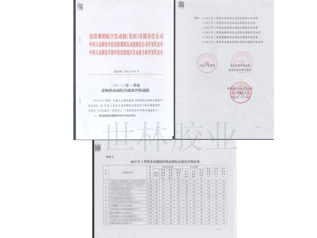 世林膠業(yè)獲得某發(fā)動機集團公司供應(yīng)商綜合績效好評: