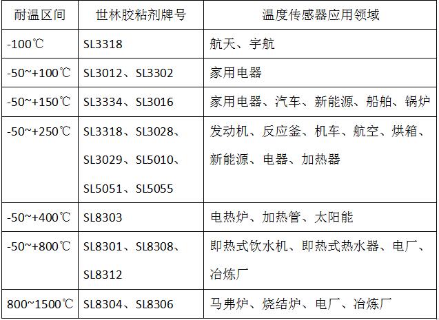 膠粘劑的性能高低對傳感器的影響較大,使用性能穩(wěn)定,耐老化好的膠粘劑為傳感器能長期穩(wěn)定的工作提供了保障!所以除了上述表格可以參考之外,您應該和我們世林的工程師溝通到具體的應用要求,此外被粘接的具體材質(zhì)對傳感器專用膠的選擇也會有所不同。